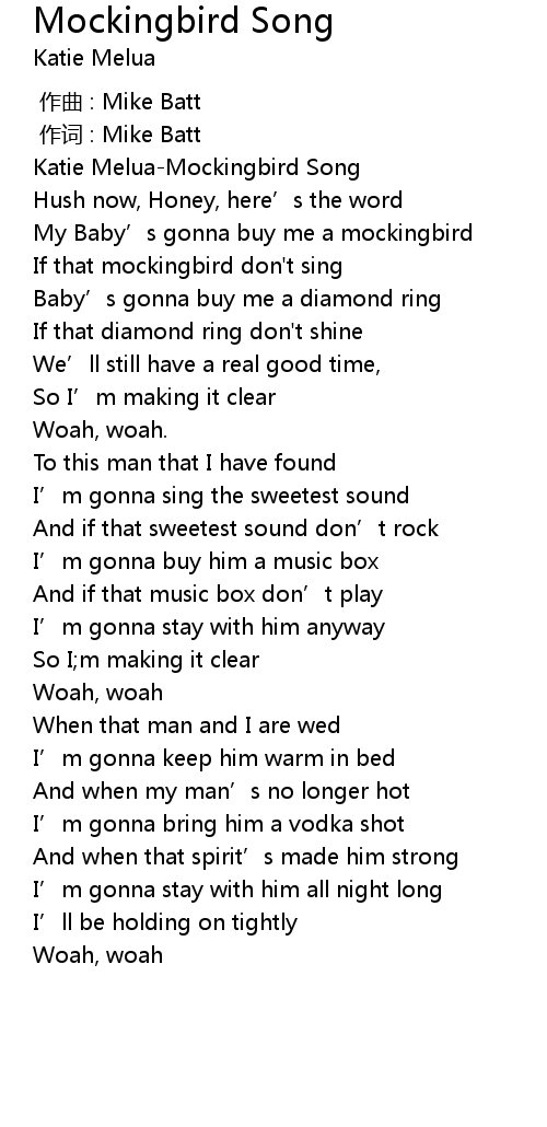 | [00:02.44] | Katie MeluaMockingbird Song |