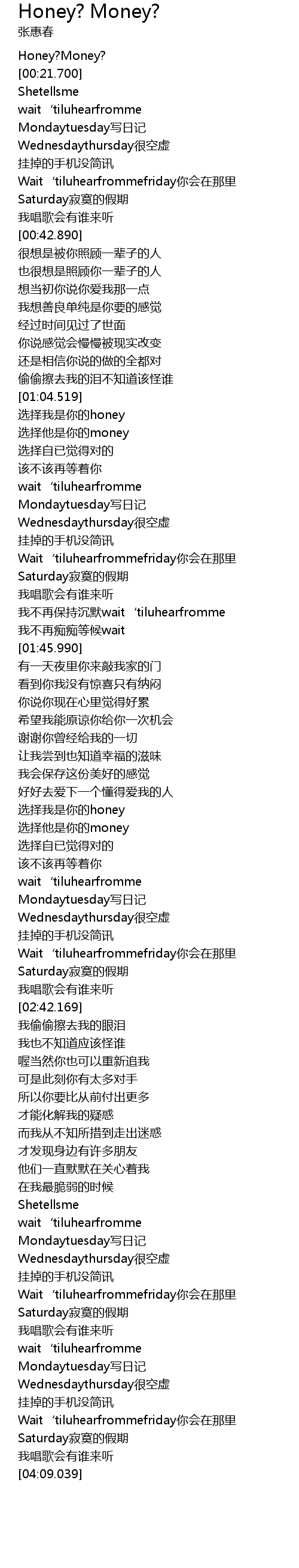 | [00:04.009] | Honey?Money? |