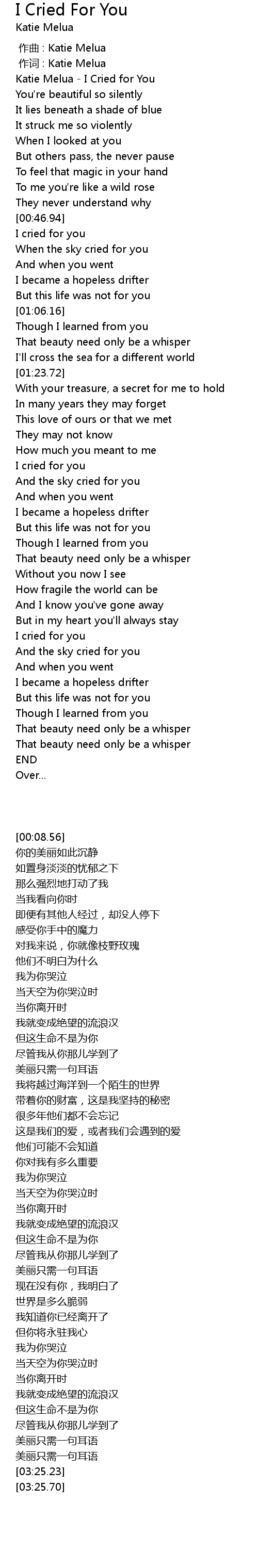 | [00:08.56] | Katie Melua I Cried for You |