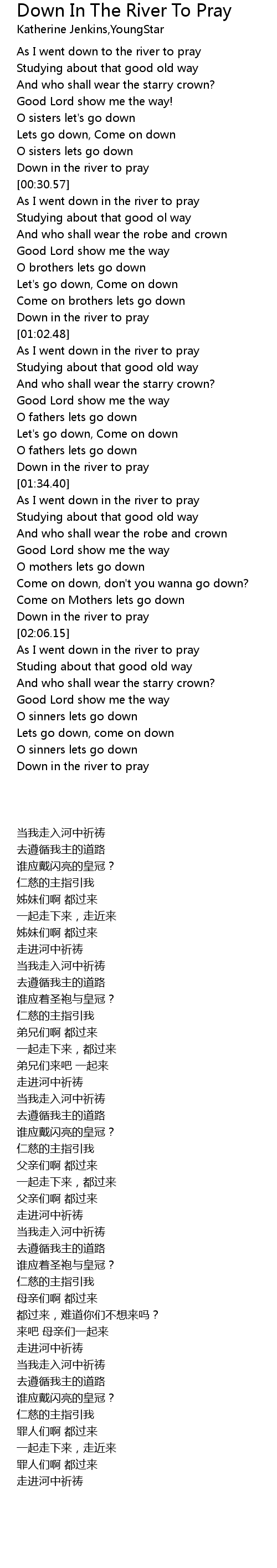 Down in the river to pray |