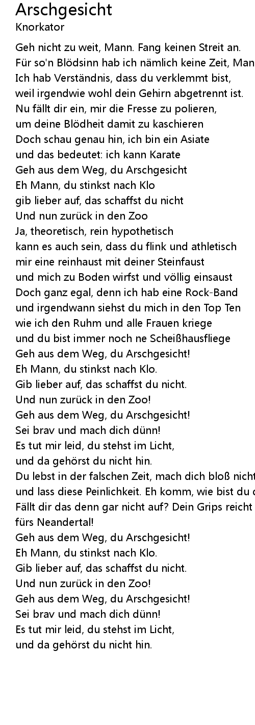 | Nu f llt dir ein, mir die Fresse zu polieren, | |