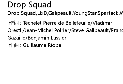 | [00:00.00-1] | 作词 : Téchelet Pierre de Bellefeuille/Vladimir Orestil/Jean-Michel Poirier/Steve Galipeault/Francis Drapeau/Julien Racine/David Gazaille/Benjamin Lussier |