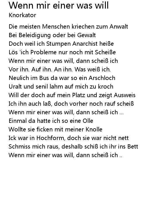 | Wenn mir einer was will, dann scheiß ich .. |