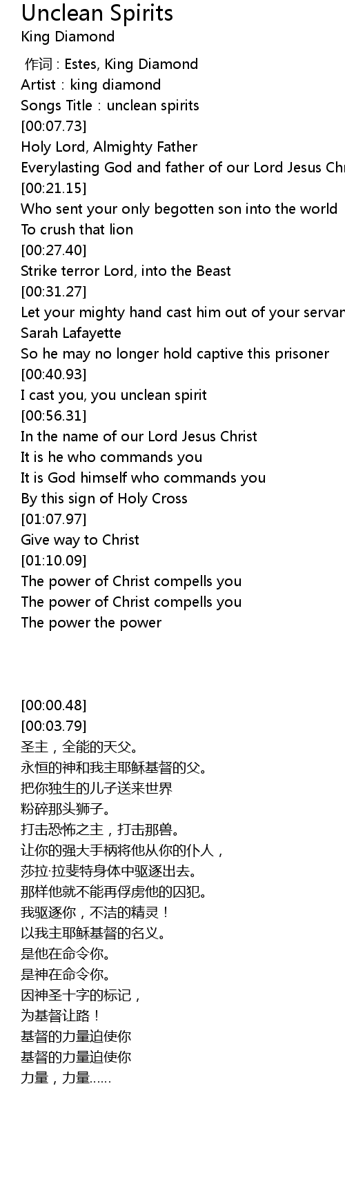| [00:00.00] | 作词 : Estes, King Diamond |