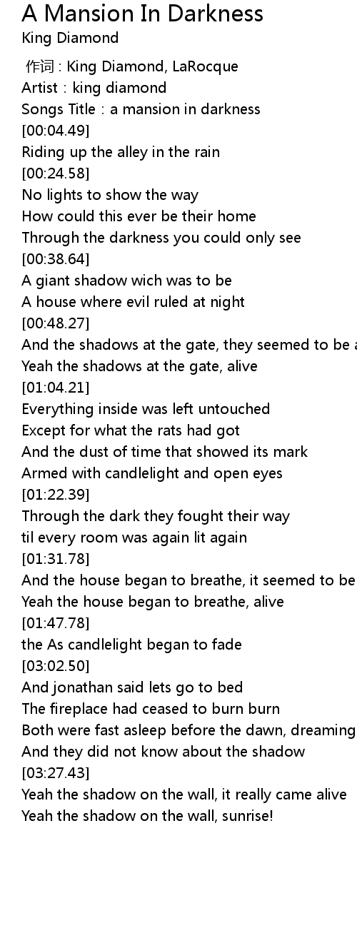 | [00:01.80] | Songs Title:a mansion in darkness |