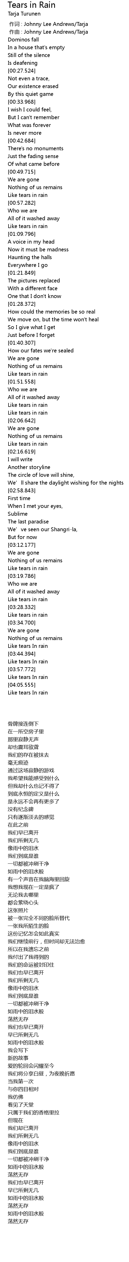 | [00:00.000] | 作词 : Johnny Lee Andrews/Tarja |