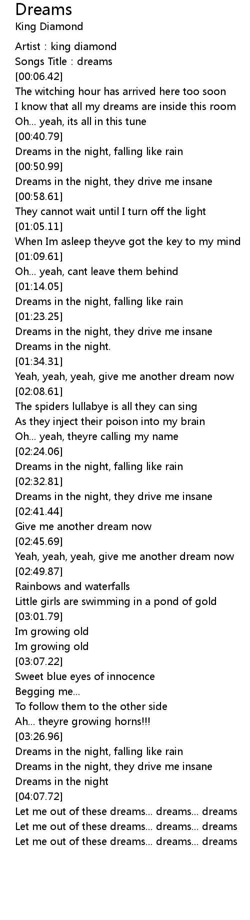 | [04:20.22] | Let me out of these dreams... dreams... dreams |