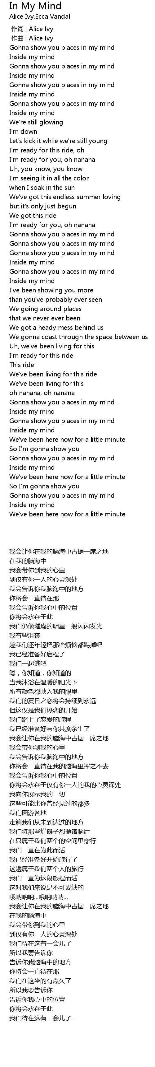 | [00:00.000] | 作词 : Alice Ivy |