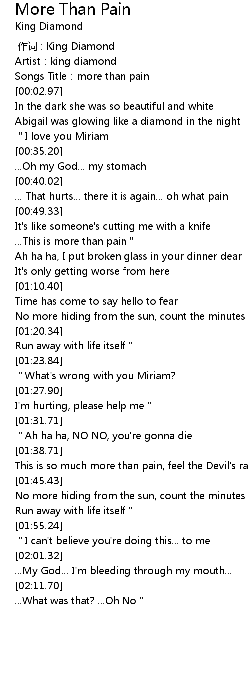 | [01:39.59] | This is so much more than pain, feel the Devil' s rain |