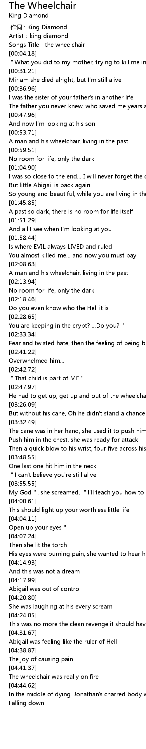 | [00:00.00] | 作词 : King Diamond |