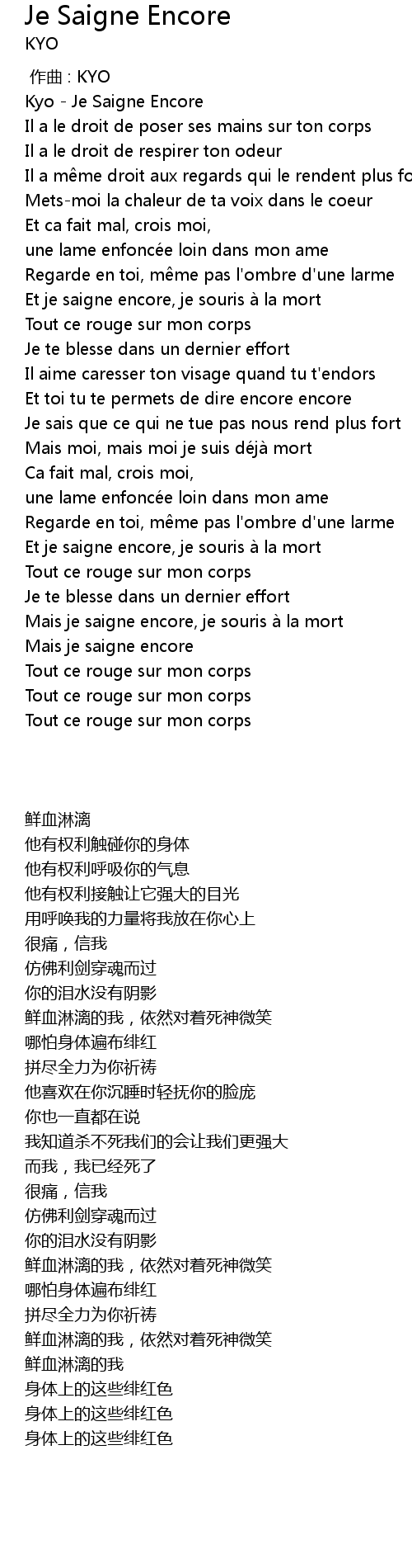 | [00:00.00] | Kyo - Je Saigne Encore |