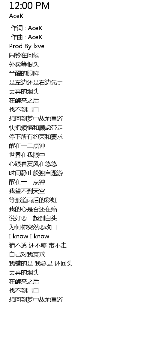| [00:59.397] | xǐng zài shí èr diǎn zhōng |