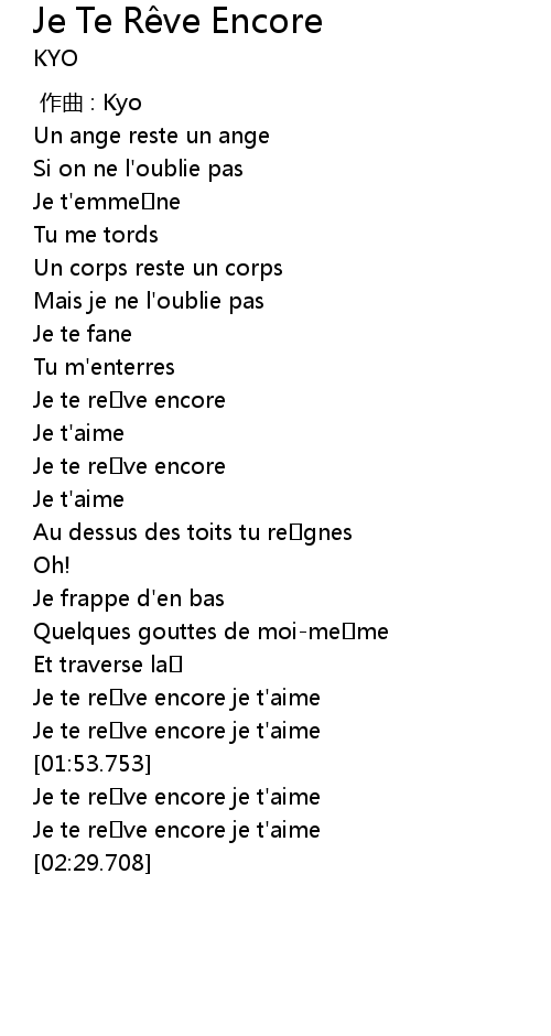 | [02:24.690] | Je te rêve encore je t'aime |