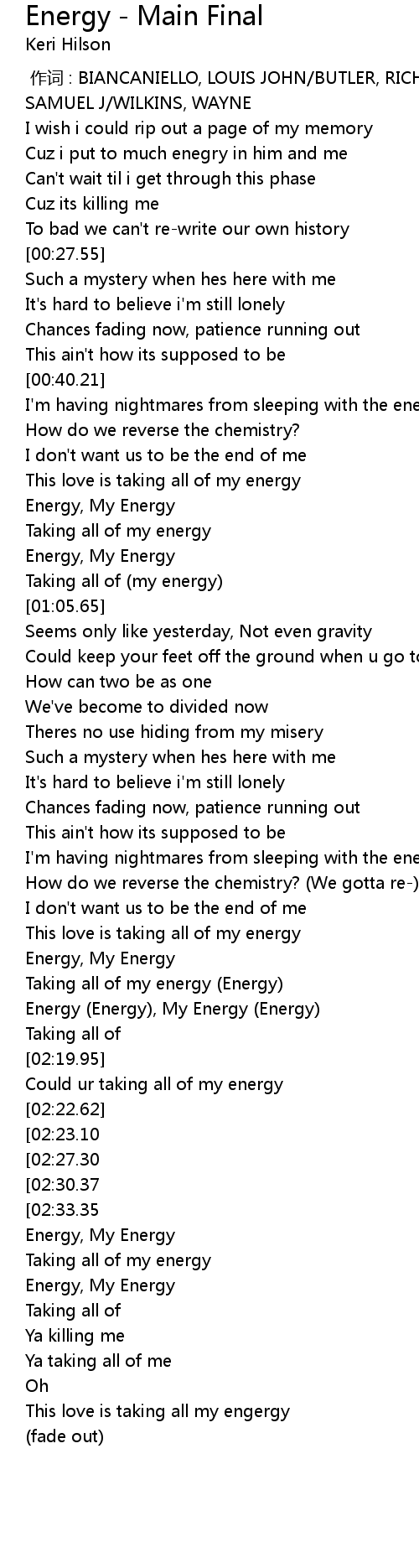 | [00:55.24] | Energy, My Energy |