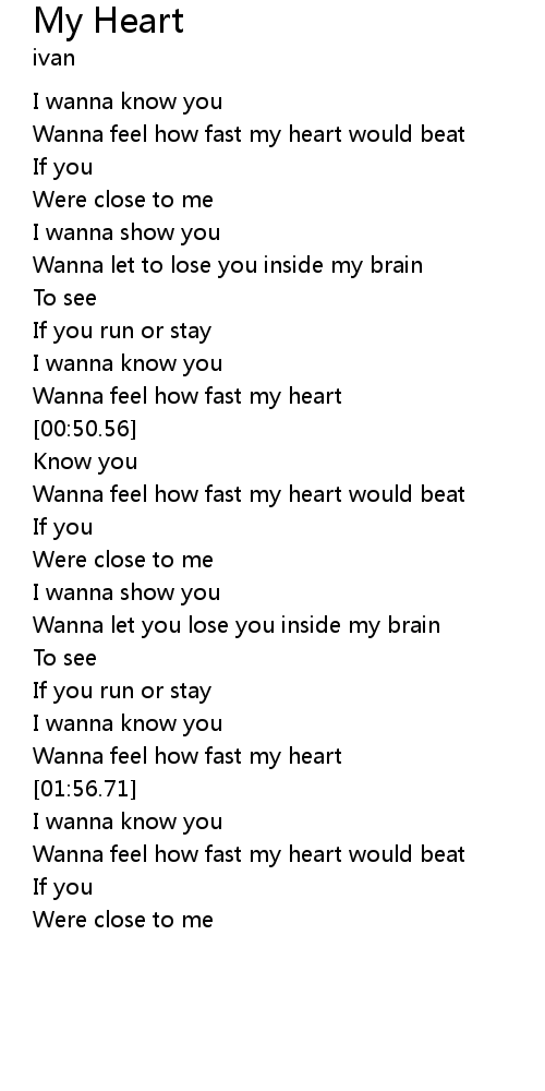 | [00:46.30] | Wanna feel how fast my heart |