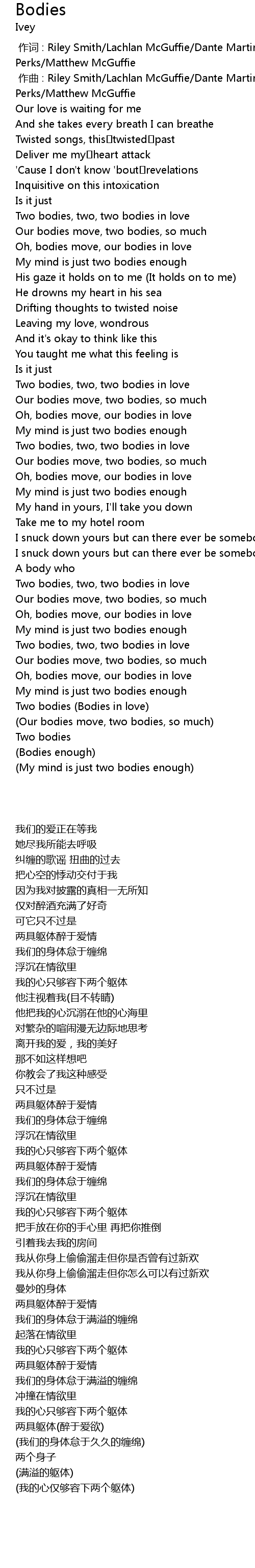 | [02:47.351] | Two bodies, two, two bodies in love |