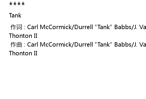 | [00:00.00-1] | zuo qu : Carl McCormick Durrell " Tank" Babbs J. Valentine Steven Thonton II |