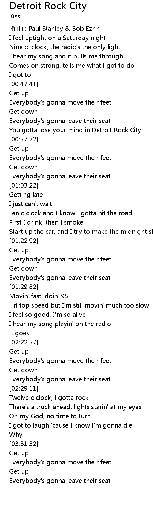 | [00:52.74] | You gotta lose your mind in Detroit Rock City |