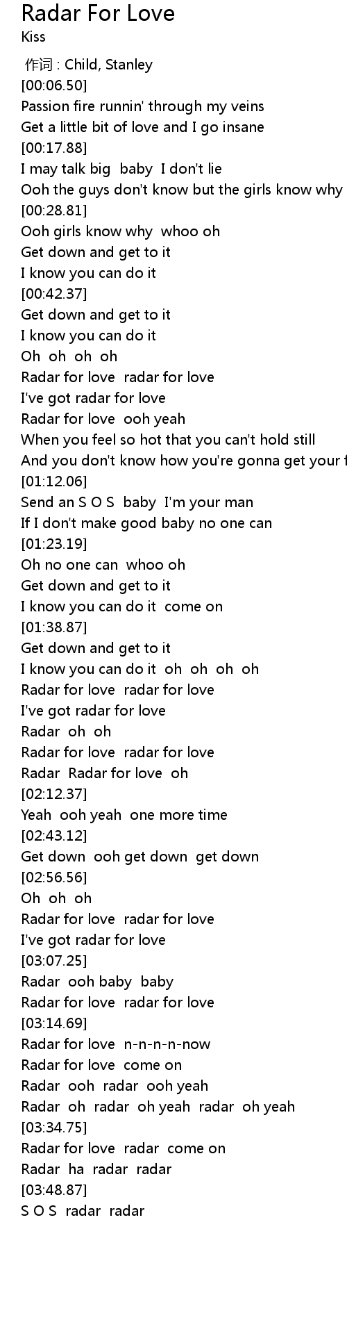 | [03:15.56] | Radar for love n-n-n-n-now |