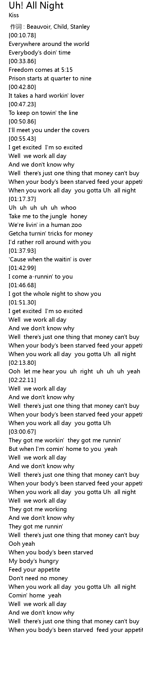| [02:08.61] | When you work all day you gotta Uh all night |