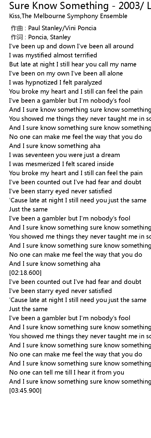 | [03:15.190] | And I sure know something sure know something |