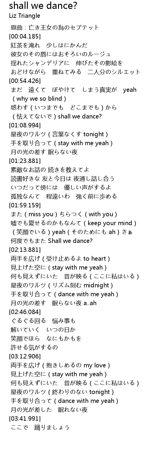 | [01:06.824] | (怯えてないで)shall we dance? |
