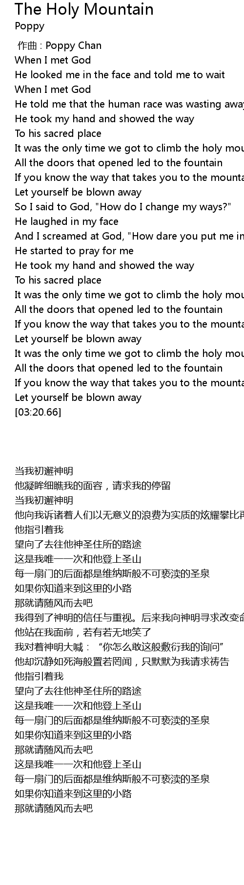 | [00:00.000] | zuò qǔ : Poppy Chan |
