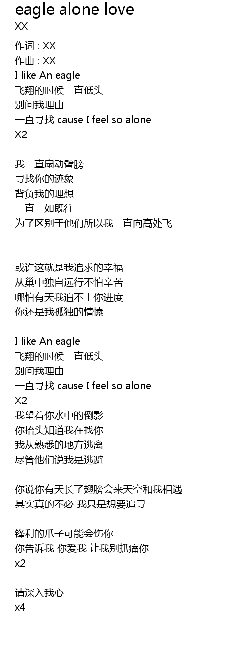 | Song | eagle alone love |