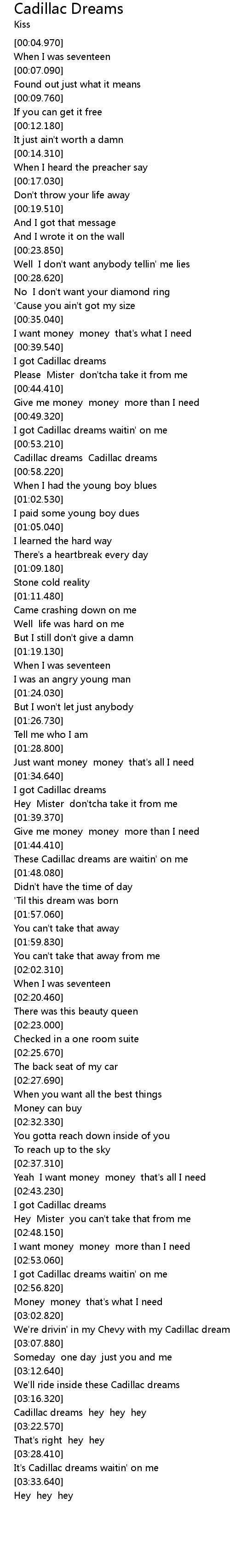 Cadillac dreams hey hey hey |
