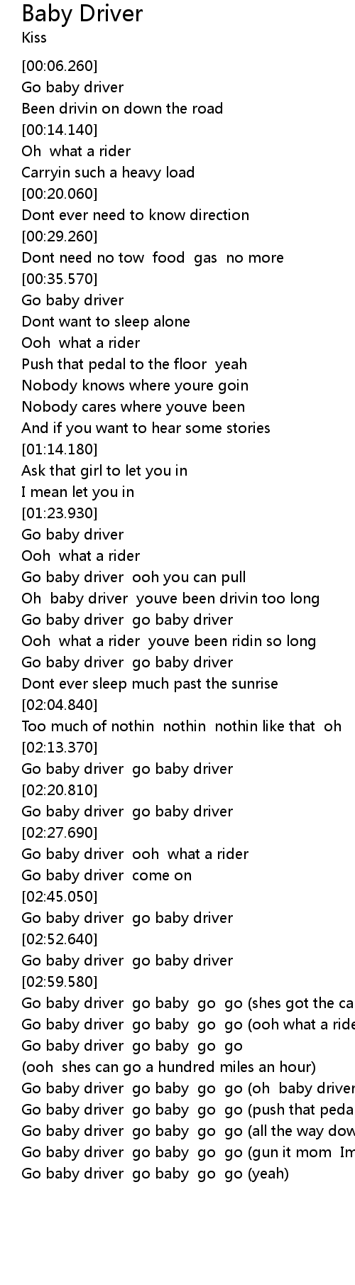 Go baby driver go baby go go |
