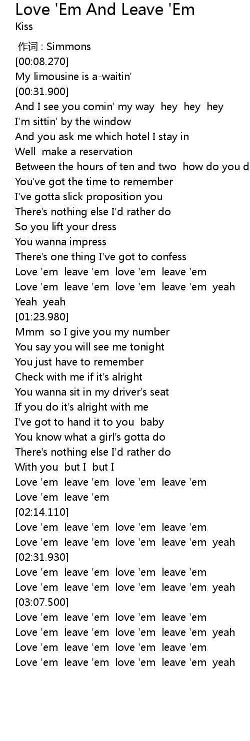 | [03:10.510] | Love ' em leave ' em love ' em leave ' em |