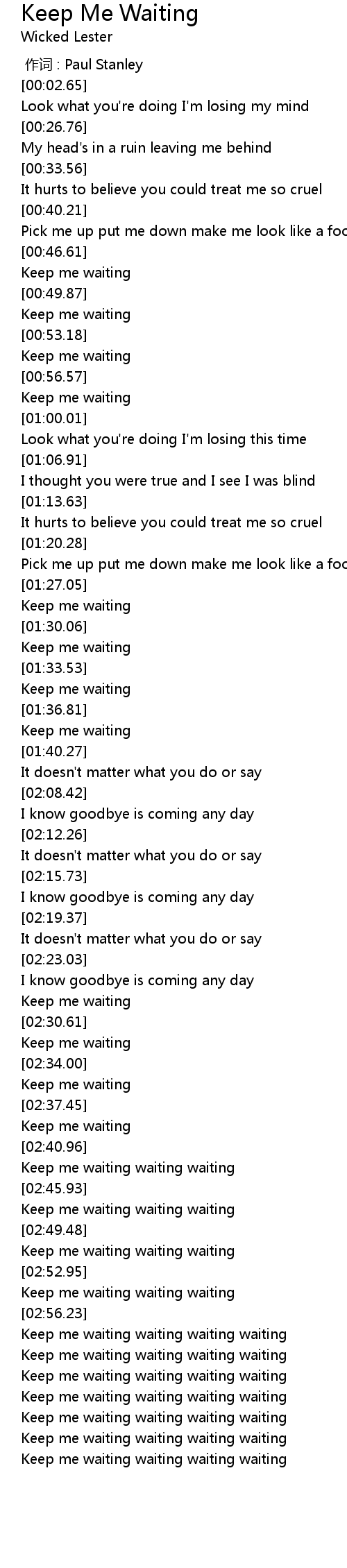 | [02:46.64] | Keep me waiting waiting waiting |