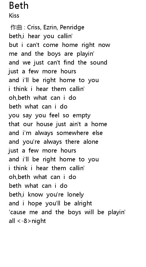 | [00:17.01] | beth,i hear you callin' |