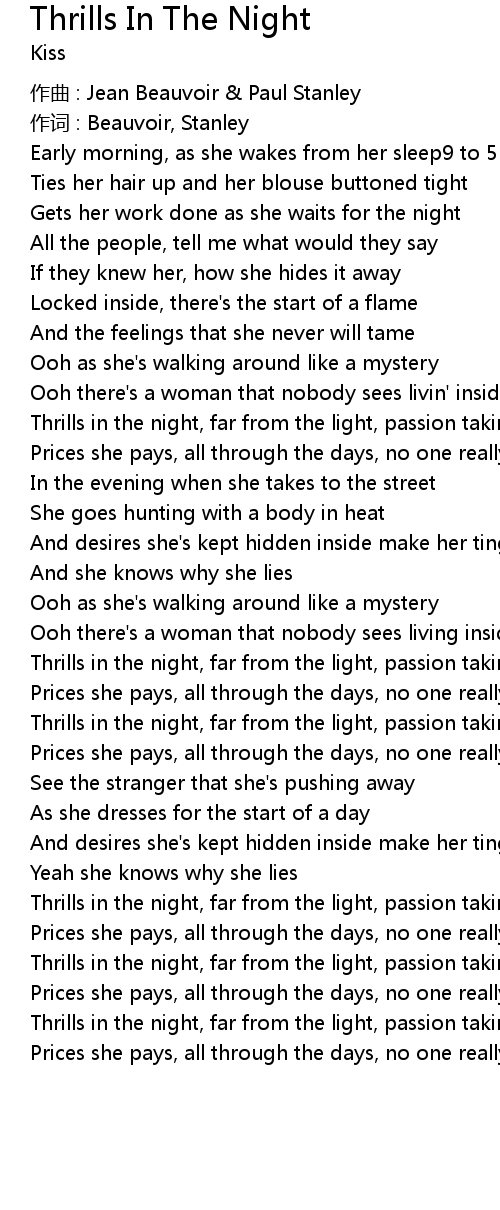 | Thrills in the night, far from the light, passion taking over | |