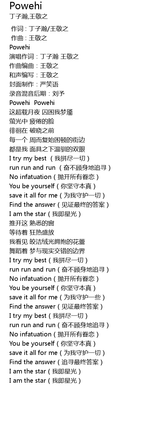 | [03:44.286] | I try my best(我拼尽一切) |