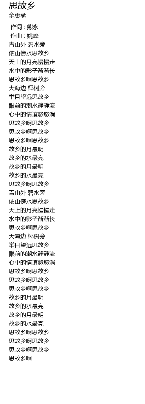 | [01:06.12] | 思故乡啊思故乡 |