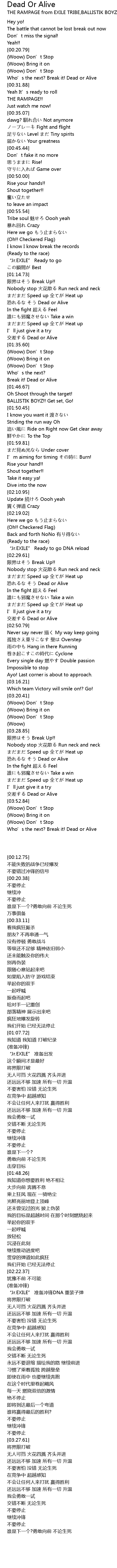 | [04:00.38] | Who' s the next? Break it! Dead or Alive |