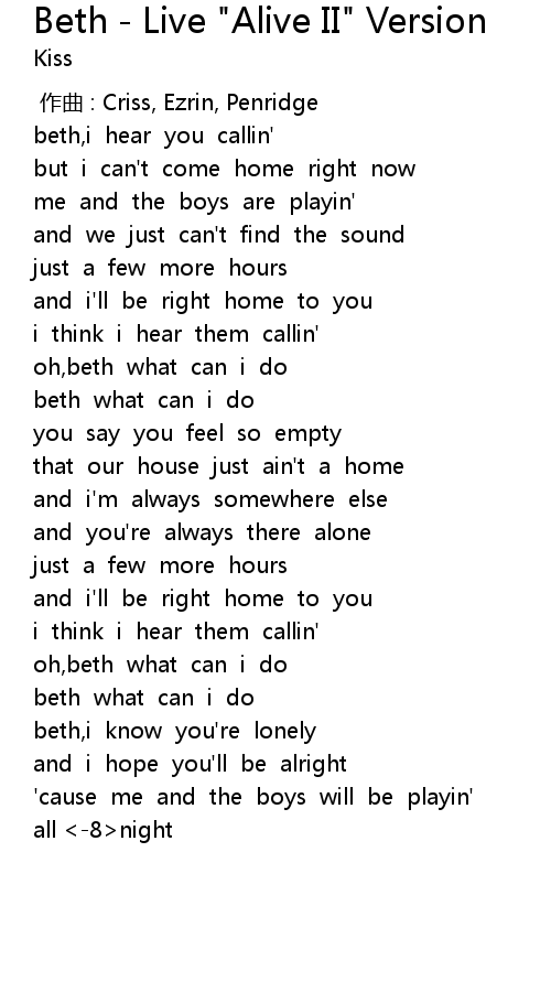 | [00:17.01] | beth,i hear you callin' |