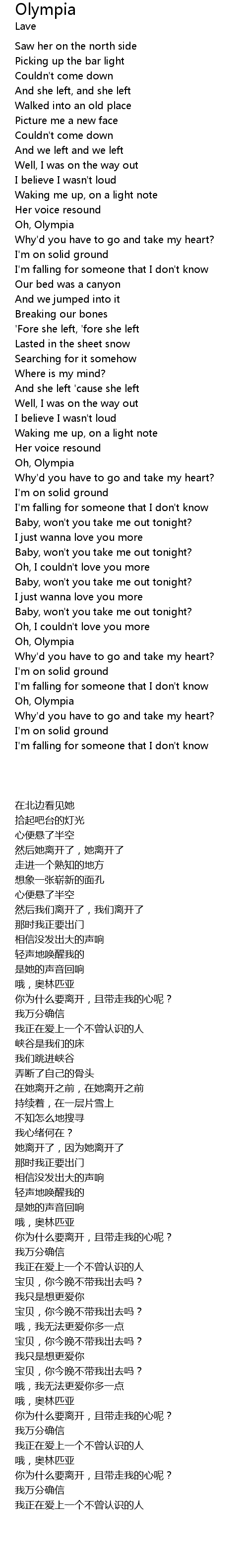 | [01:11.51] | Oh, Olympia |