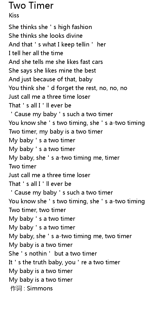 | [02:20] | My baby, she's a-two timing me, two timer |