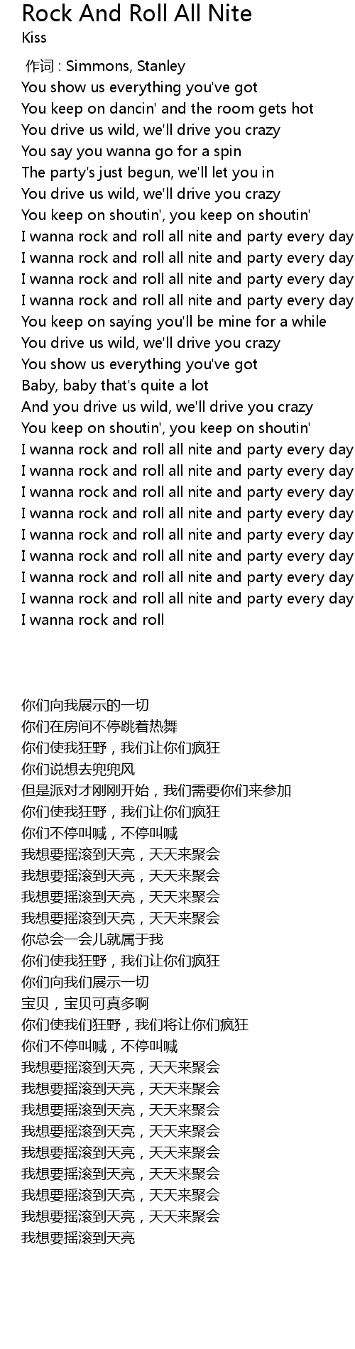 | [00:52.50] | I wanna rock and roll all nite and party every day |