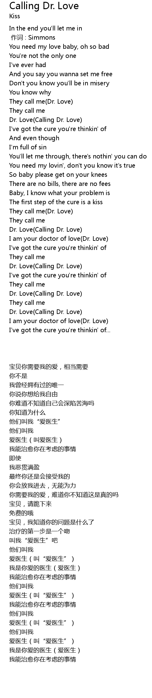 | [02:44.00] | Dr. Love Calling Dr. Love |