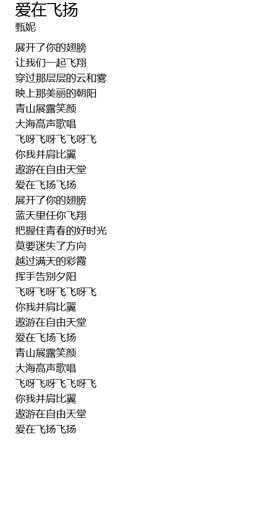 | [00:49.560] | 飞呀飞呀飞飞呀飞 |