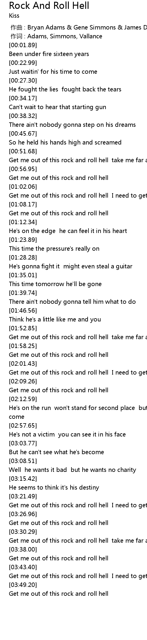 | [00:00.00] | zuo qu : Bryan Adams Gene Simmons James Douglas Vallance |