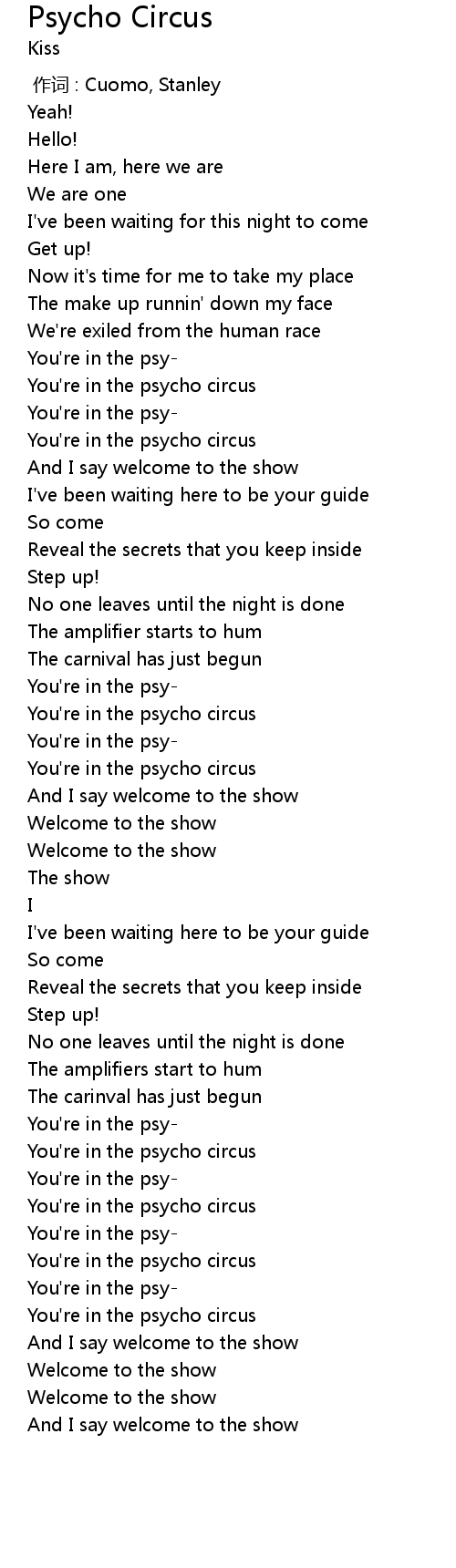 | [02:34.40] | You're in the psycho circus |