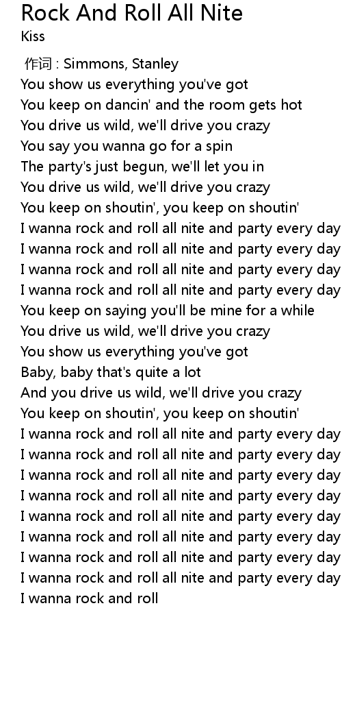 | [00:52.50] | I wanna rock and roll all nite and party every day |