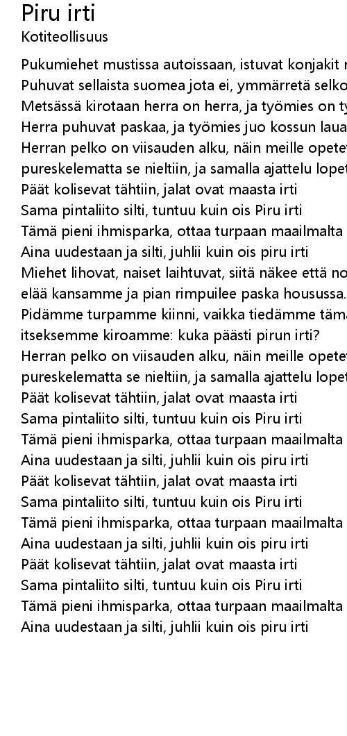 | Sama pintaliito silti, tuntuu kuin ois Piru irti | |