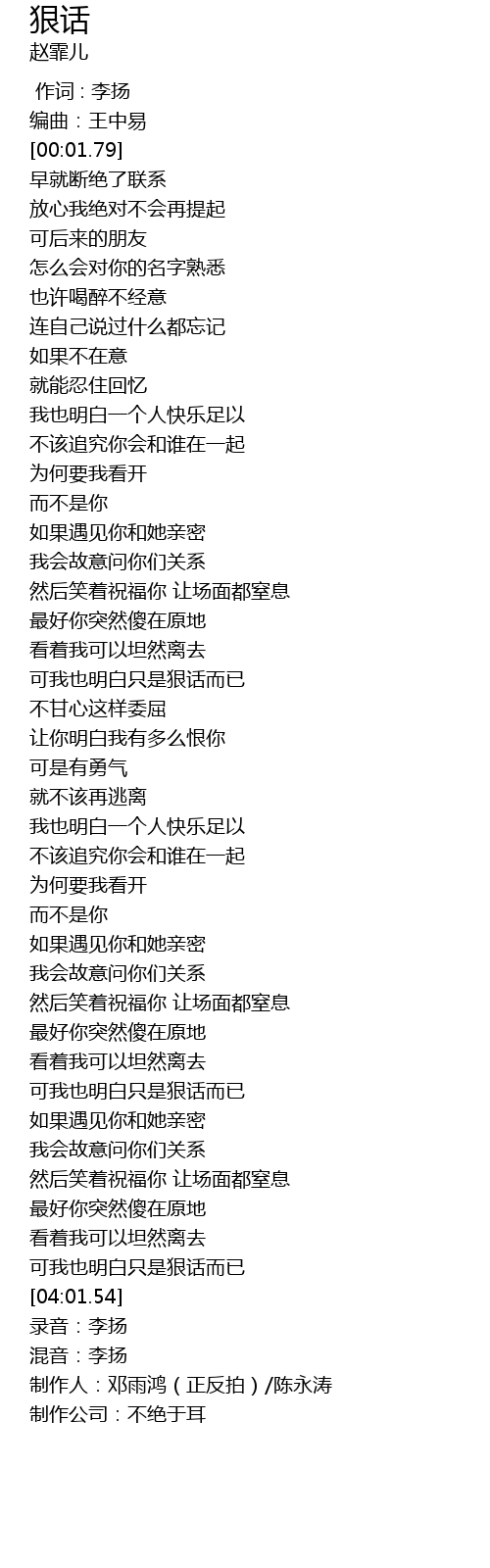 | [04:05.54] | 制作公司:不绝于耳 |