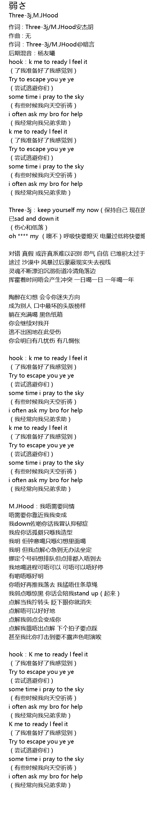 | 作词 : Three-3j/M.JHood安杰胡 | |