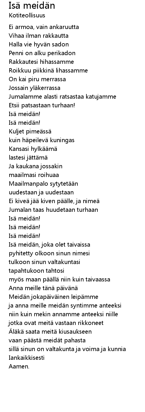 | sillä sinun on valtakunta ja voima ja kunnia | |
